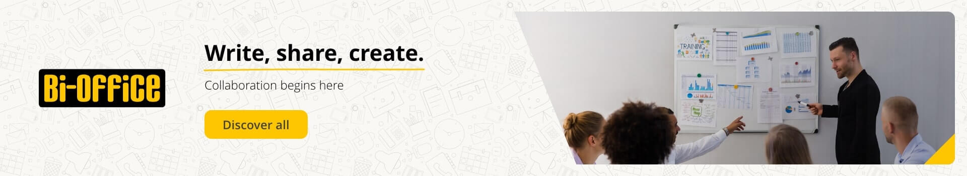 Bi-Office understands that collaboration, creativity and flexibility are the key to every business success. They offer a wide range of choices for equipping open workspaces and small offices, with writing, notice and mobile boards, and display cases.