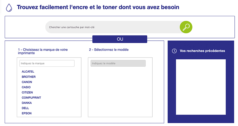 Vous ne voyez plus l'arbre qui cache la forêt ? Toutes les imprimantes n'ont pas besoin de la même cartouche. Heureusement, nous avons mis au point un outil simple qui vous permet en quelques clics de trouver la cartouche appropriée pour votre imprimante.